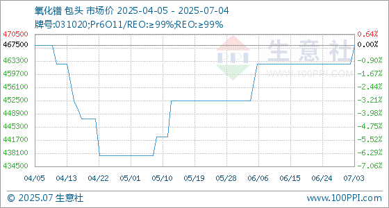 7月4日生意社氧化镨基准价为467500.00元/吨